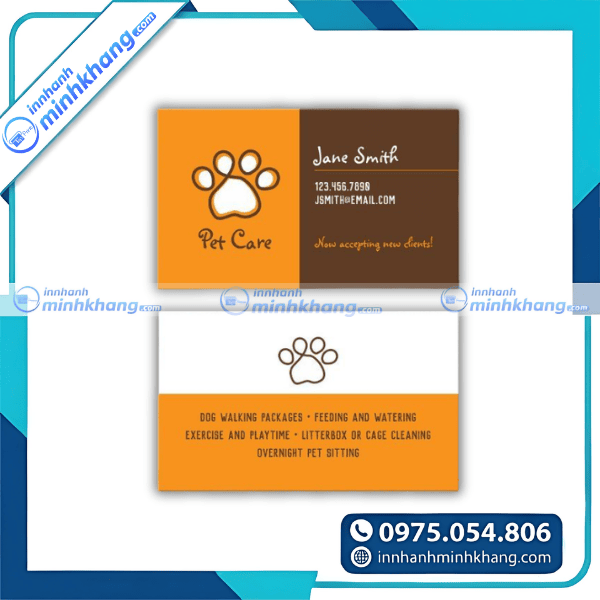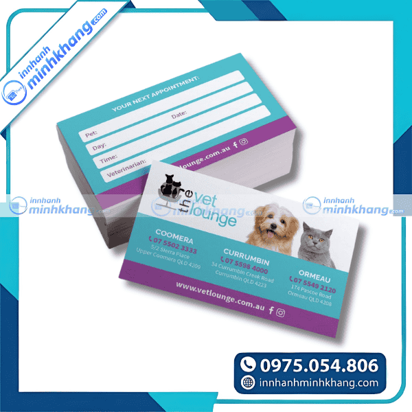 Một mẫu card visit thú y chuyên nghiệp, ấn tượng là sự đầu tư hoàn toàn xứng đáng để xây dựng hình ảnh uy tín và kết nối bền chặt với cộng đồng khách hàng yêu thú cưng. Hãy để In Nhanh Minh Khang đồng hành cùng bạn tạo ra những ấn phẩm chất lượng, sắc nét với chi phí tối ưu nhất thị trường. Liên hệ ngay với chúng tôi qua hotline: 0975.054.806 để được đội ngũ chuyên viên tư vấn tận tình và nhận báo giá chi tiết ngay hôm nay!