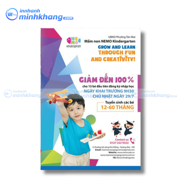 Khi đã có một bản thiết kế hoàn hảo, việc tìm kiếm một đơn vị in ấn chuyên nghiệp là bước cuối cùng để hiện thực hóa ý tưởng. In Nhanh Minh Khang là địa chỉ tin cậy chuyên cung cấp dịch vụ in tờ rơi trường mầm non với chất lượng vượt trội.