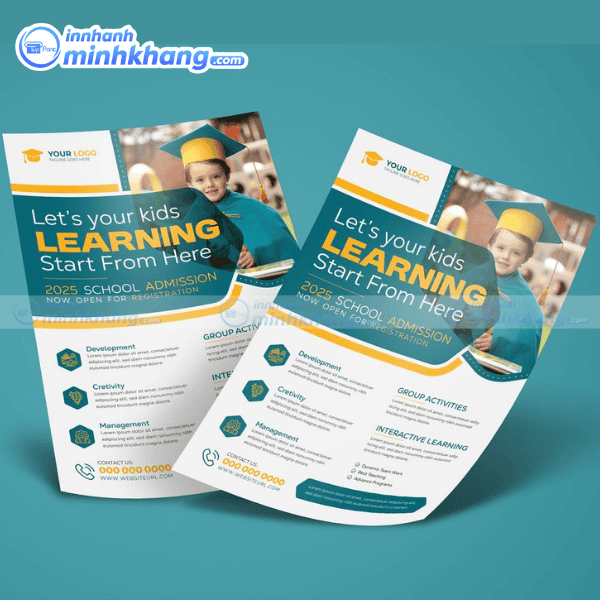 - Xây dựng lòng tin với phụ huynh: Phụ huynh khi chọn trường cho con thường ưu tiên những thông tin rõ ràng và minh bạch. Một tờ rơi trường mầm non được thiết kế bài bản, in ấn sắc nét sẽ thể hiện sự chỉn chu và tâm huyết của nhà trường. Đây là ấn phẩm cầm tay giúp phụ huynh có thể lưu giữ, đọc đi đọc lại và thảo luận cùng gia đình trước khi đưa ra quyết định nhập học cho con.